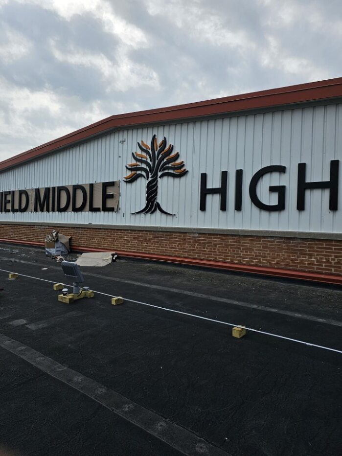 Our #SignEffectz installation team has the experience and equipment to install our products and overcome any issues along the way. Laying out the letters and planning the placement is crucial to getting it right! The pictures below represent our #SignEffectz crew laying out the letters, and using paper to outline the letters on the school building. We always deliver at the highest quality and hope current and future families enjoy the new signage for many years to come!