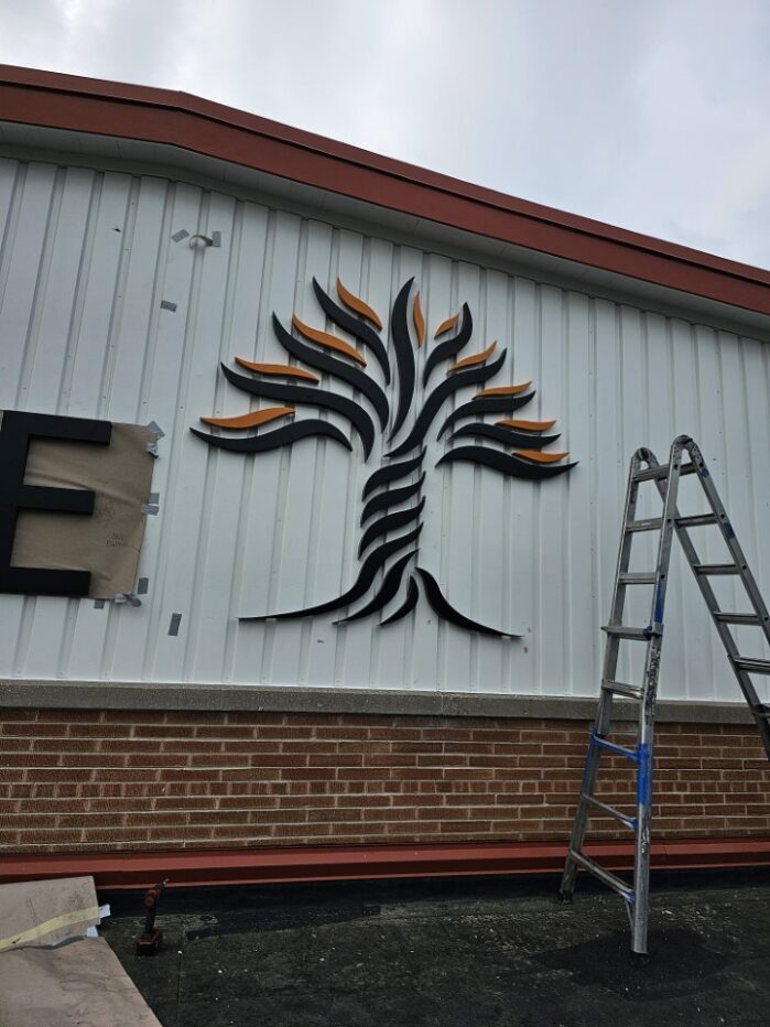 This past month, #SignEffectz helped design and install non-lit dimensional exterior signs, interior vinyl wall graphics, and an interior tree that we skillfully routed and engraved, repurposing it from their original gymnasium.